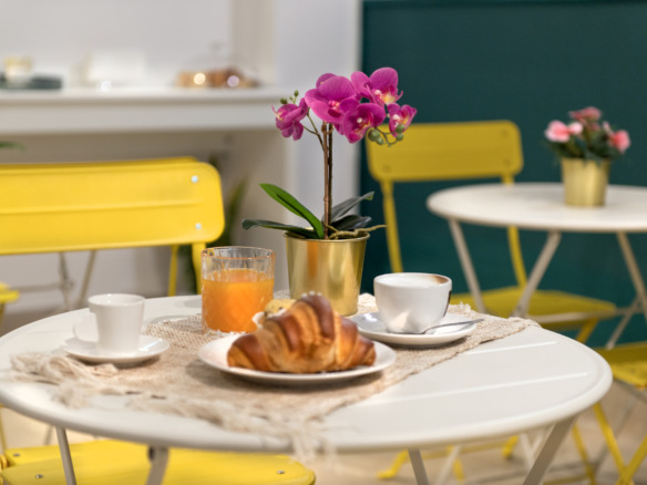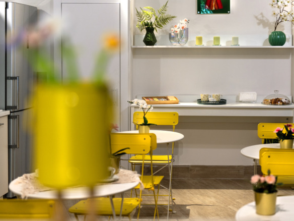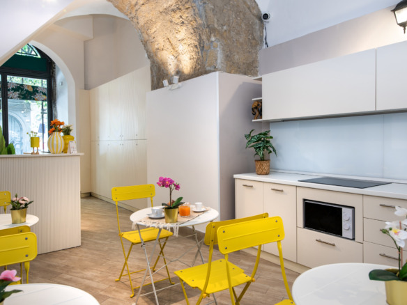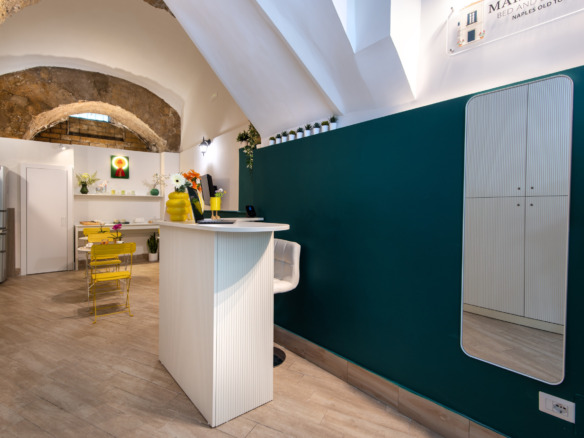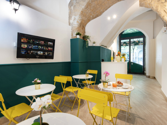 Ogni ambiente è studiato per trasmettere leggerezza e vitalità, senza rinunciare all’eleganza: linee moderne, tocchi pop e un’atmosfera che racconta Napoli con un linguaggio giovane e contemporaneo.